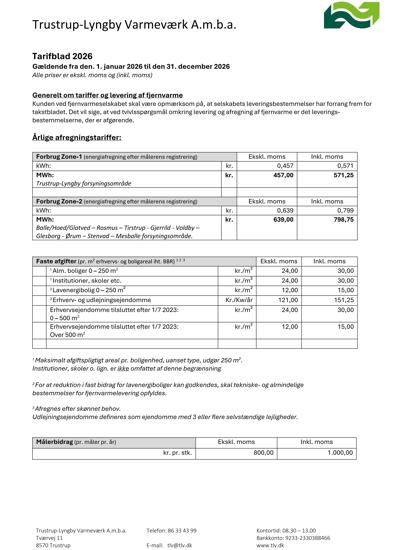 Tarifblad 2026 Trustrup Lyngby Varmeværk A.M.B.A.